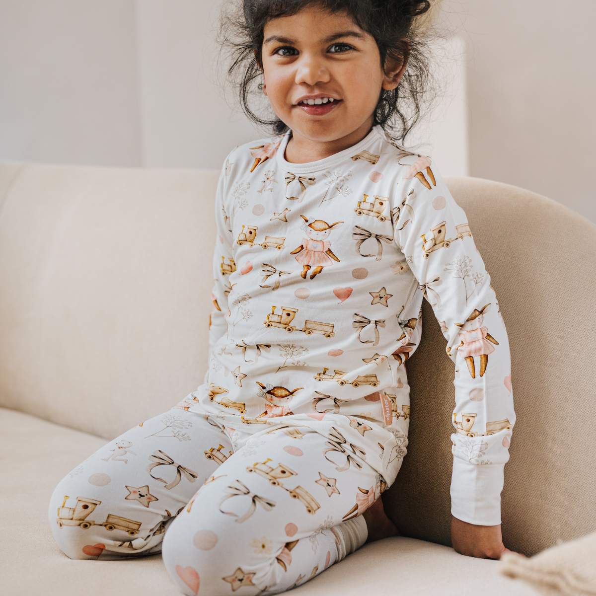 The perfect PJ set for playing, sleeping and lazy days. Featuring long sleeves with added length to grow with them!
